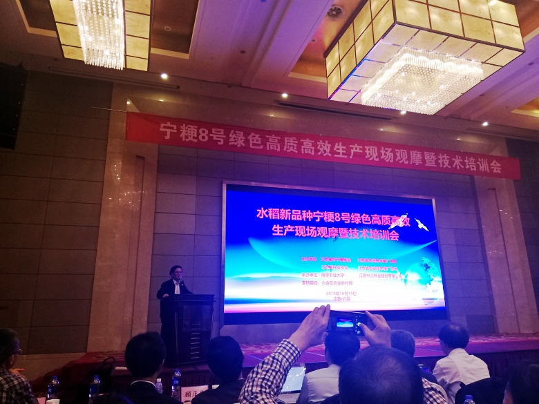 萬建民院士作了《“寧粳8號”的選育及特征特性介紹》報告;南京農(nóng)業(yè)大學丁艷鋒副校長為大會作了《“寧粳8號”優(yōu)質(zhì)高效栽培技術》專題培訓。省農(nóng)技推廣總站管永祥站長作了《全力推進稻米產(chǎn)業(yè)高質(zhì)量發(fā)展,努力打造新時代江蘇魚米之鄉(xiāng)》報告。