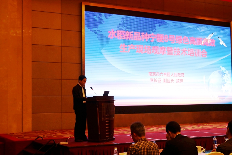 隨后舉行了集中會議,六合區(qū)政府李長征副區(qū)長致辭時表示將以此次現(xiàn)場觀摩會為契機,研究出臺以“寧粳8號”為代表的優(yōu)質(zhì)水稻加價收購政策,進一步加大“寧粳8號”等綠色高質(zhì)高效水稻新品種的推廣力度,提升糧食生產(chǎn)水平。