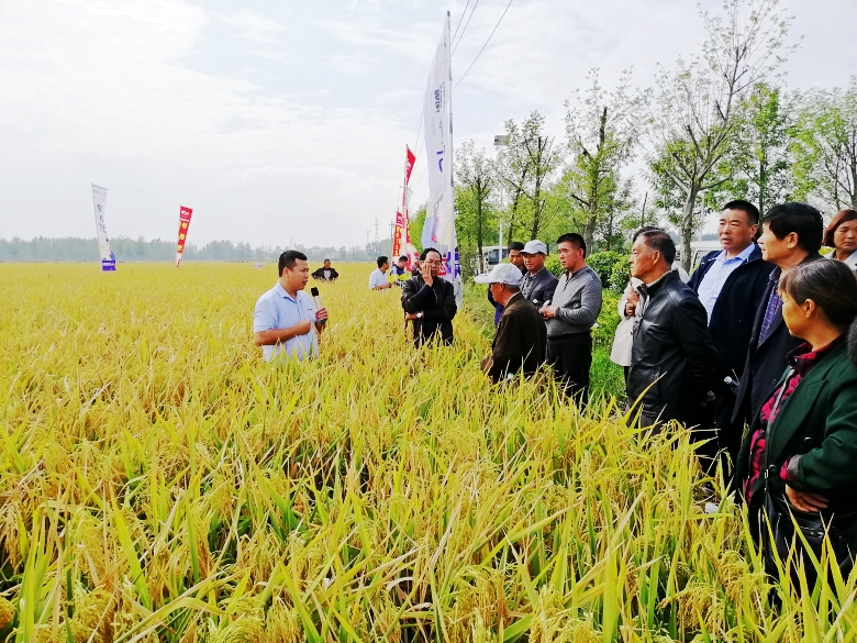 上午11時,宿遷中江營銷總監(jiān)劉效華在現(xiàn)場為大家講解了贛優(yōu)735的栽培技術(shù)及管理,贛優(yōu)735+專用肥在宿遷已做過3年的對比田間試驗示范,使用專用肥田間產(chǎn)量比使用尿素肥料普遍增產(chǎn)15%左右,今年贛優(yōu)735+專用肥在宿遷已推廣了近4萬畝,回訪收獲的種植戶,紛紛表示使用“贛優(yōu)735+專用肥”比其它品種每畝增產(chǎn)200斤以上,每畝增效250元左右,表示下年繼續(xù)“贛優(yōu)735+專用肥”來種植。