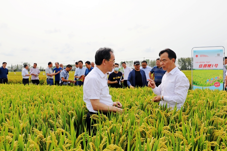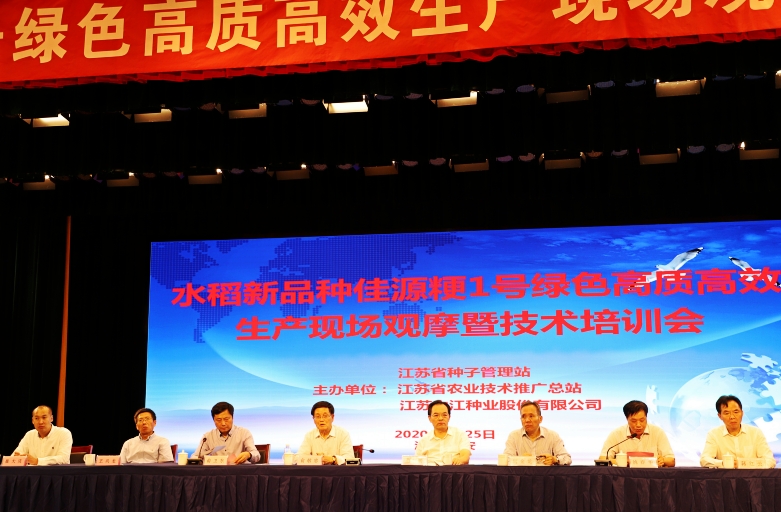 9月25日,公司中熟中粳稻新品種“佳源粳1號”綠色高質(zhì)高效生產(chǎn)現(xiàn)場觀摩培訓(xùn)會在淮安市白馬湖農(nóng)場成功召開。江蘇省人大常委會原副主任俞敬忠,江蘇省農(nóng)業(yè)農(nóng)村廳副廳長蔡恒,江蘇省種子管理站站長何金龍,江蘇省農(nóng)業(yè)技術(shù)推廣總站二級研究員倪玉峰出席會議;蘇北五市農(nóng)業(yè)農(nóng)村局分管局長、種子管理系統(tǒng)、農(nóng)技推廣系統(tǒng)代表,公司淮北地區(qū)經(jīng)銷商代表及種田大戶代表220余人參加會議。農(nóng)業(yè)農(nóng)村廳二級巡視員俞衛(wèi)東主持會議,白馬湖農(nóng)場黨委書記姚春華致歡迎詞。淮安市委副書記張國梁和副市長肖進方會前到賓館看望了參會代表。