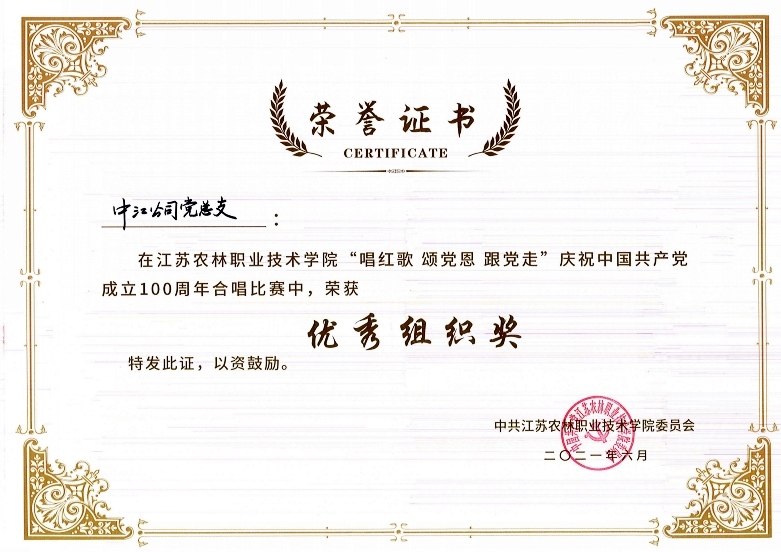 6月30日,為紀(jì)念中國共產(chǎn)黨建黨100周年,江蘇農(nóng)林職業(yè)技術(shù)學(xué)院舉辦“唱紅歌 頌黨恩 跟黨走”慶祝中國共產(chǎn)黨成立100周年合唱比賽暨“七一”表彰會。共有13個黨總支參賽,公司黨總支榮獲二等獎及優(yōu)秀組織獎。
