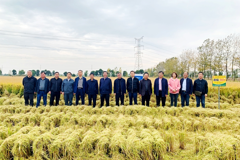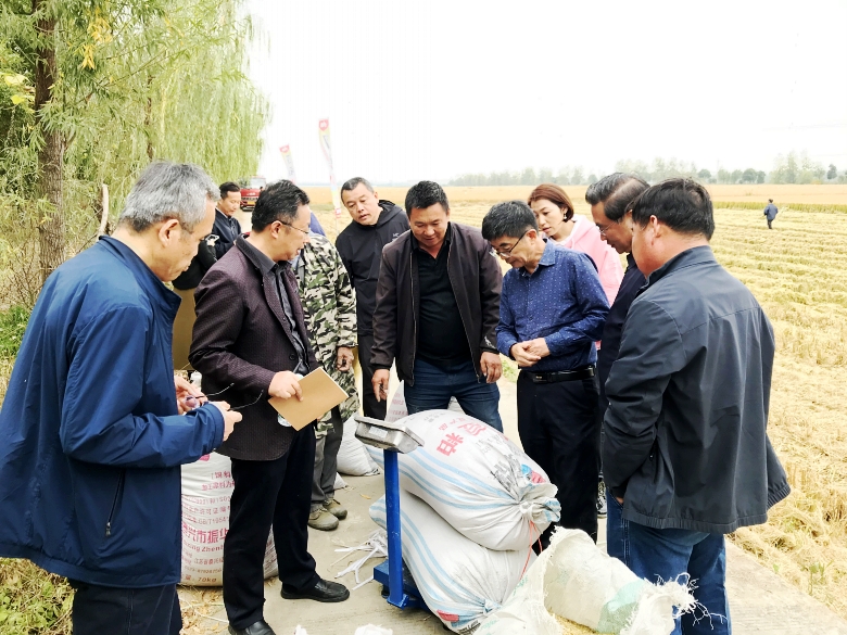 10月30日,由農(nóng)業(yè)農(nóng)村部全國農(nóng)技推廣服務(wù)中心組織專家組,赴宿遷市泗洪縣石集鄉(xiāng)毛山村,對江蘇省農(nóng)業(yè)科學(xué)院宿遷農(nóng)科所和江蘇中江沃達(dá)豐種業(yè)科技有限公司申報(bào)超級稻認(rèn)定的泗稻301百畝高產(chǎn)示范方進(jìn)行現(xiàn)場實(shí)收測產(chǎn)。測產(chǎn)專家組在對示范方進(jìn)行整體考察評估后,隨機(jī)抽取3處田塊,進(jìn)行現(xiàn)場機(jī)收測產(chǎn)。經(jīng)過丈量面積、清機(jī)后機(jī)收、水分測量、過磅稱重、水分折算等環(huán)節(jié),最終得出泗稻301實(shí)收畝產(chǎn)781.9公斤(水分按14.5%計(jì)算)。專家組一致認(rèn)為,今年7-8月份江蘇省水稻幼穗分化期及抽穗揚(yáng)花期遭遇有氣象記錄以來極端高溫干旱氣候,10月上中旬又連續(xù)兩次遭受低溫冷害影響等諸多不利氣候條件,泗稻301仍然實(shí)現(xiàn)了大面積增產(chǎn),實(shí)屬不易。