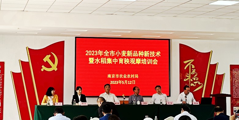 小麥覆隴黃,風吹麥浪香。5月12日, 2023 年全市小麥新品種新技術及水稻集中育秧觀摩培訓會在南京江寧召開,全市農業(yè)農村系統有關領導、農技推廣系統有關技術人員、科研教學單位專家學者、各區(qū)稻麥種子經銷商及種植大戶代表等參加活動。