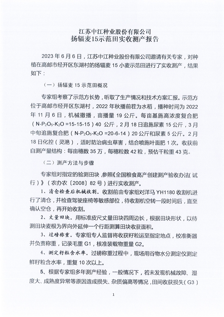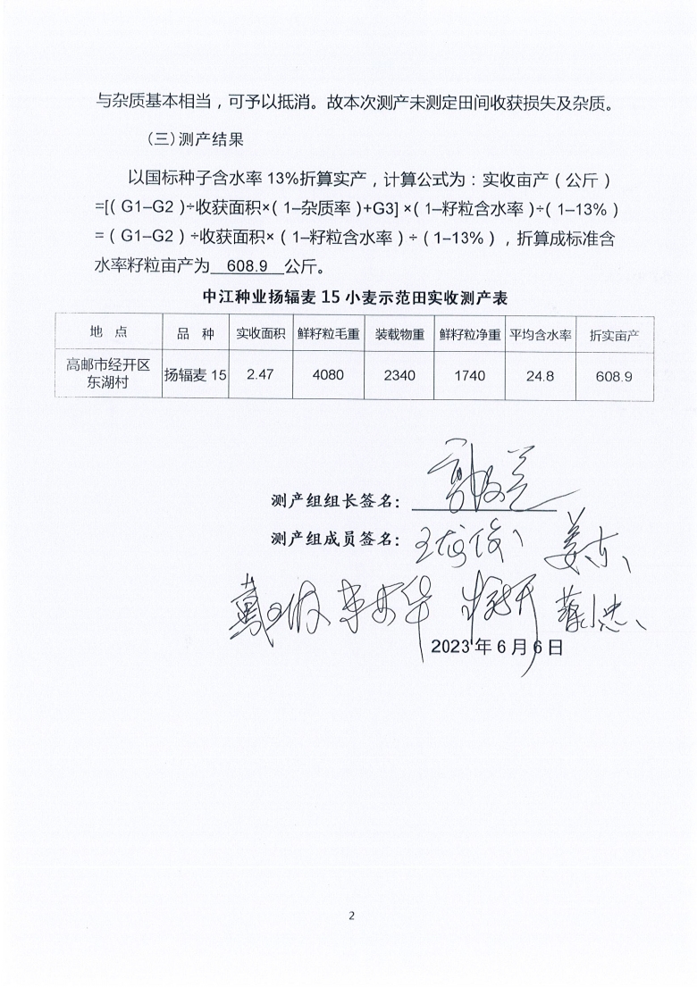 熱烈祝賀我公司“揚(yáng)輻麥15”通過省專家組實(shí)收測產(chǎn)驗(yàn)收,平均畝產(chǎn)量608.9公斤!