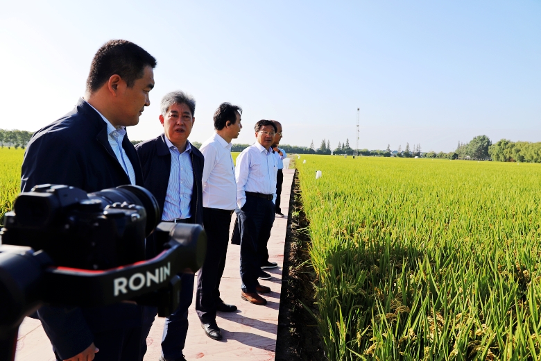 上午,參會代表乘九輛大巴來到東臺市五烈現(xiàn)代農(nóng)業(yè)示范園,現(xiàn)場觀摩5000畝“寧香粳9號”綠色高質(zhì)高效生產(chǎn)示范方,田間即將成熟的“寧香粳9號”穗大粒飽、稈青籽黃,呈現(xiàn)一派豐收景象。參加觀摩的領(lǐng)導(dǎo)、專家和代表對“寧香粳9號”田間表現(xiàn)交口稱贊,示范方理論測產(chǎn)每畝767.6公斤。該品種今年六月被農(nóng)業(yè)農(nóng)村部確認為超級稻品種。