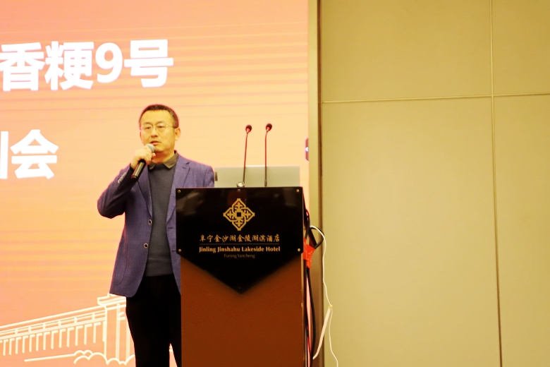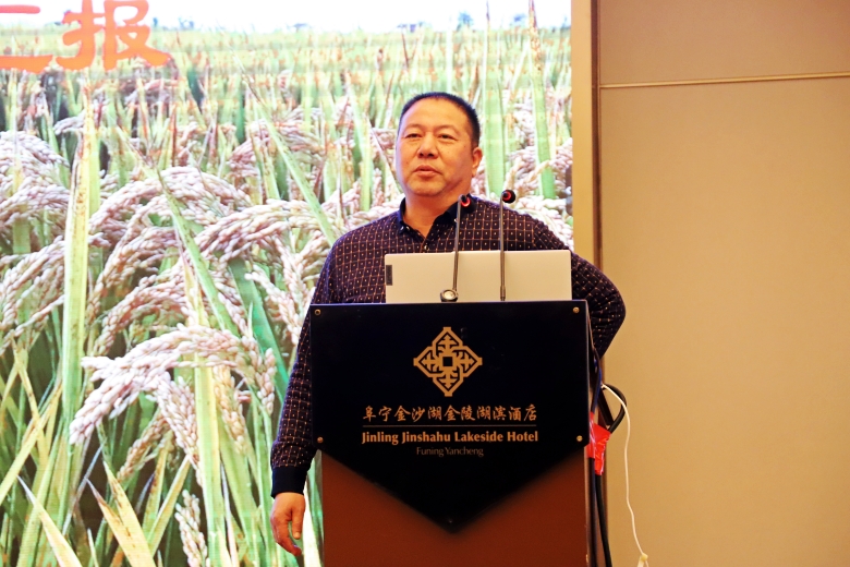 江蘇中禾種業(yè)有限公司副總經(jīng)理黃慧明介紹公司近幾年在寧香粳9號品種推廣,產(chǎn)品銷售取得的相應(yīng)成果以及后續(xù)推廣計劃。