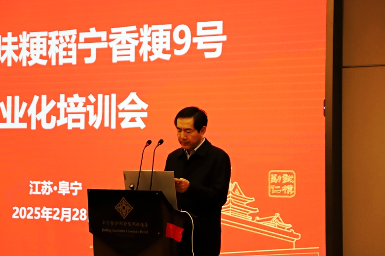 2月28日,優(yōu)質(zhì)食味粳稻寧香粳9號產(chǎn)業(yè)化培訓(xùn)會在阜寧召開。萬建民院士視頻參會,江蘇省農(nóng)業(yè)農(nóng)村廳副廳長朱新華、南京農(nóng)業(yè)大學(xué)副校長丁艷鋒,江蘇省農(nóng)業(yè)農(nóng)村廳種業(yè)處處長、省種子管理站站長馬愛京,阜寧縣副縣長金鳳邦出席會議。蘇中揚州、泰州、淮安、鹽城四市及各區(qū)縣農(nóng)業(yè)農(nóng)村局分管領(lǐng)導(dǎo)、農(nóng)技推廣站長、種子站長,南京農(nóng)業(yè)大學(xué)相關(guān)科研人員,中糧米業(yè)、種業(yè)企業(yè)以及種田大戶代表共150余人參加會議。公司副董事長蔣紅云、總經(jīng)理劉永健、副總經(jīng)理查軍民、總經(jīng)理助理王文及市場部全體人員、江郵公司參加會議。