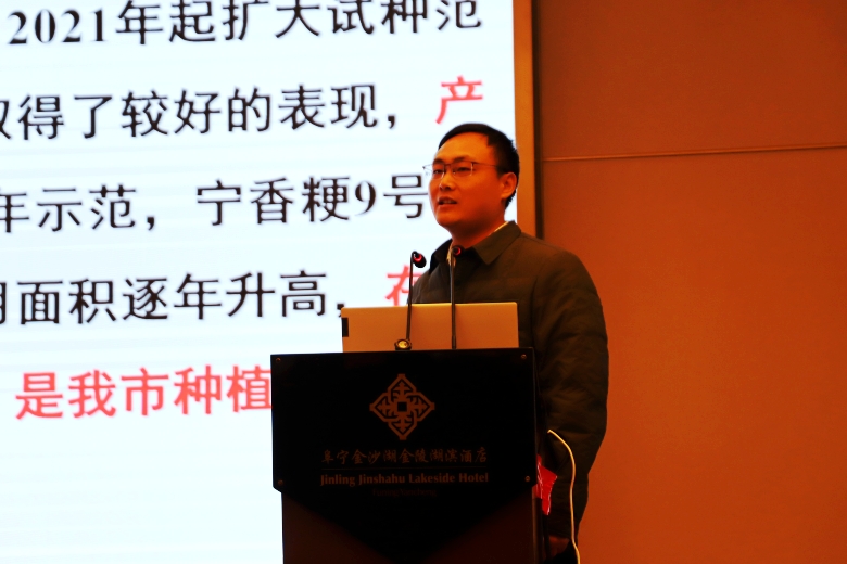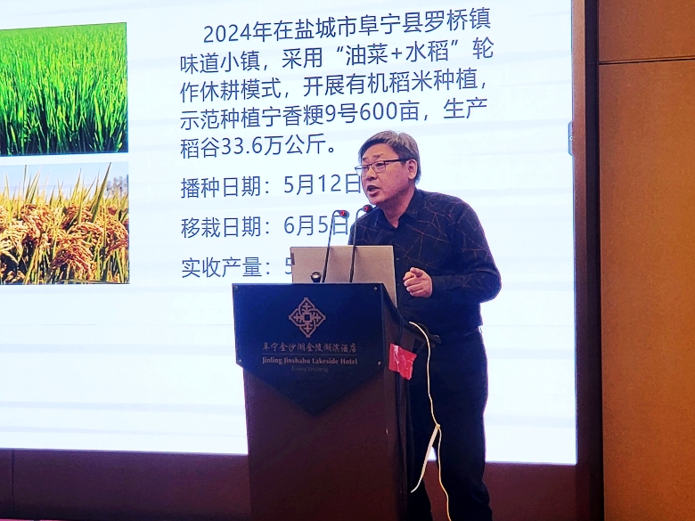 淮安市金湖縣農(nóng)業(yè)技術(shù)推廣中心主任閔季春介紹了金湖縣2024年在推廣寧香粳9號取得的成就,并表示2025年將加大力度繼續(xù)推廣種植。