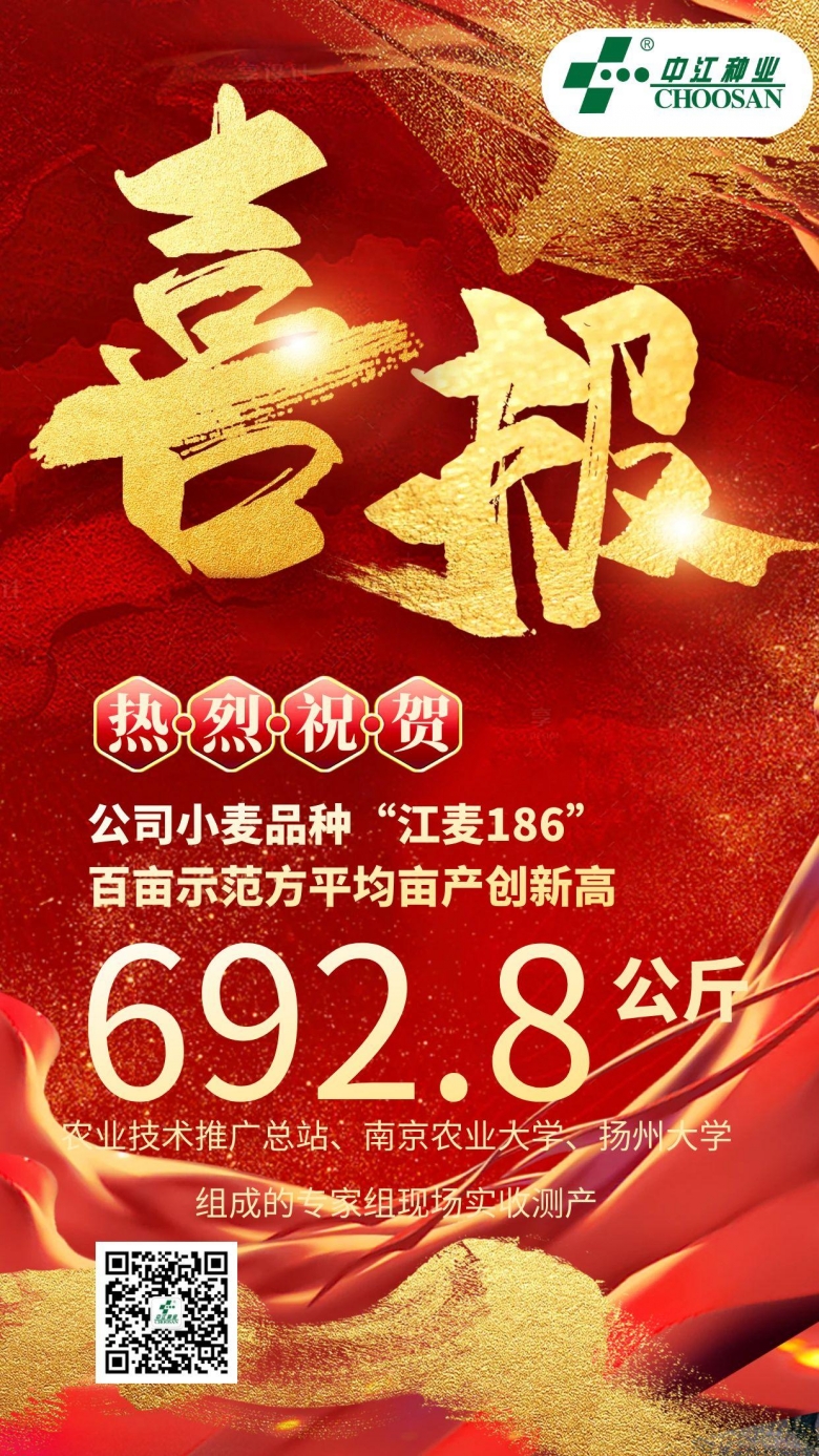 6月9日,宿遷市宿城區(qū)龍河鎮(zhèn)三胡村的麥田里傳來好消息在省農(nóng)業(yè)技術(shù)推廣總站、南京農(nóng)業(yè)大學、揚州大學組成的專家組現(xiàn)場實收測產(chǎn)中,種植大戶臧耕年的“江麥186”小麥豐產(chǎn)片百畝方田塊,以平均畝產(chǎn)692.8公斤的成績,創(chuàng)下江蘇稻茬小麥百畝方實測產(chǎn)量新紀錄時,瞬間點燃全場熱情。