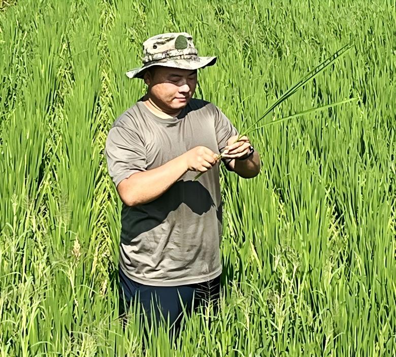 在金莊智慧農(nóng)業(yè)生產(chǎn)示范基地,陳光主要負(fù)責(zé)水稻、小麥等主要糧食作物的技術(shù)與生產(chǎn)管理,成為科技賦能農(nóng)業(yè)的積極實(shí)踐者。他的工作核心聚焦于科技創(chuàng)新與傳統(tǒng)農(nóng)藝的融合,他是無人機(jī)飛防植保“尖兵”,熟練掌握農(nóng)業(yè)無人機(jī)操作技術(shù),承擔(dān)基地大面積作物的精準(zhǔn)植保任務(wù)。從方案制定、藥劑配比、航線規(guī)劃,到現(xiàn)場飛行操作、效果評(píng)估及設(shè)備維護(hù),他全程負(fù)責(zé),顯著提升了植保效率和精準(zhǔn)度,有效降低了農(nóng)藥使用量和人工成本,為基地的農(nóng)業(yè)生產(chǎn)節(jié)省了大量資源,提高了經(jīng)濟(jì)效益。他也是作物全周期“管理員”,全面負(fù)責(zé)指定區(qū)域水稻、小麥的全生育期田間管理。從種植計(jì)劃落實(shí)、品種布局,到播種移栽指導(dǎo)、生育進(jìn)程監(jiān)控、群體結(jié)構(gòu)調(diào)控,再到關(guān)鍵生育期農(nóng)藝措施的制定與執(zhí)行,他一絲不茍,確保作物健康生長,為高產(chǎn)穩(wěn)產(chǎn)奠定堅(jiān)實(shí)基礎(chǔ)。他還是水肥精準(zhǔn)“調(diào)控師”,依據(jù)科學(xué)規(guī)律,制定并實(shí)施精準(zhǔn)的灌溉與施肥方案。他密切關(guān)注土壤墑情、養(yǎng)分狀況及天氣變化,負(fù)責(zé)灌溉系統(tǒng)維護(hù),積極應(yīng)用水肥一體化技術(shù),優(yōu)化水肥資源利用效率,保障作物均衡營養(yǎng),切實(shí)提升糧食品質(zhì)與產(chǎn)量。