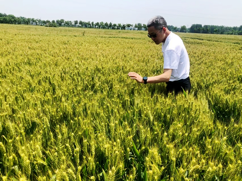 中江種業(yè)總經(jīng)理助理王文在大田里查看揚麥45長勢情況